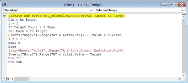 Sobre la macro de Excel Private Sub Worksheet_SelectionChange(ByVal Target As Range)