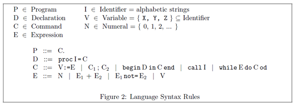 The syntax of the programming language is presented in Figure 2. As stated in the figure, there