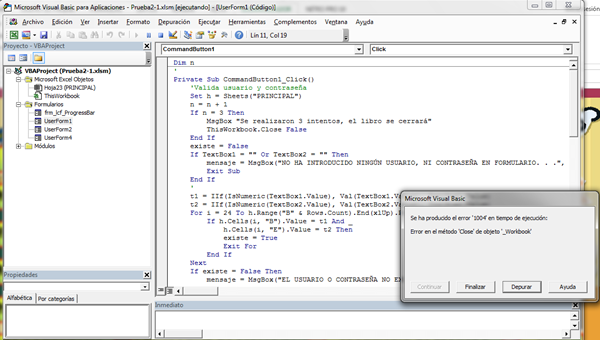 Pero quisiere aumntarle otra cosa mas, que solo se realizen 3 intentos de ingresar si no accese al formulario que se cierre el formulario y todo el libro.