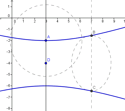 Ya tenemos los tres puntos por donde debe pasar la hipérbola, ahora los sustituiríamos y tendríamos 3 ecuaciones.