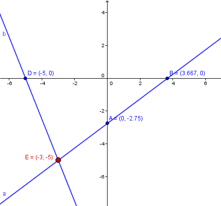 El punto de intersección es (-3, -5) coincide con el da la gráfica, se supone que estará todo bien.
