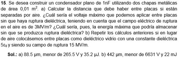 El apartado a) Consigo calcularlo sin problema ninguno. A la hora de llegar al apartado b) no sé cómo utilizar la nueva constante dieléctrica y que salga la solución que ahí figura.