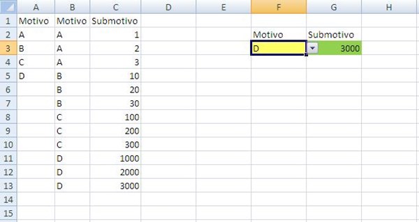 También te anexo mi archivo para que veas el funcionamiento. Selecciona un motivo en la celda F3 y en automático la celda G3 tendrá los submotivos.