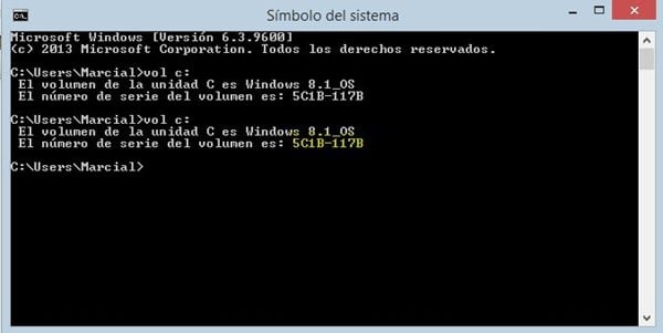 2º Escribe Vol letra unidad: Cambia letra unidad por la letra del disco del que quieras saber el nº de serie. No te olvides de los dos puntos :
