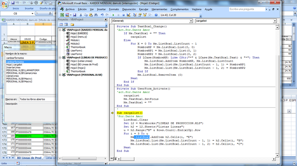 Dante Amor, esta pregunta es continuacion de MACRO 1 actualice Linea de Producion MACRO 2 agregar y consultar Linea de Produccion en Kardex Mensual. Paso a describir lo que quiero que se programe: