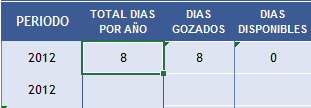 El inconveniente está cuando su ultimo día de vacaciones es día viernes, ejemplo termina el 10/07/2015 debe presentarse el 13/07/2015, entonces usando este formato donde ingreso la fecha de inicio y la fecha final, calcula cuantos días en total y en la ultima columna me indica cuando debe volver, utilizando la formula