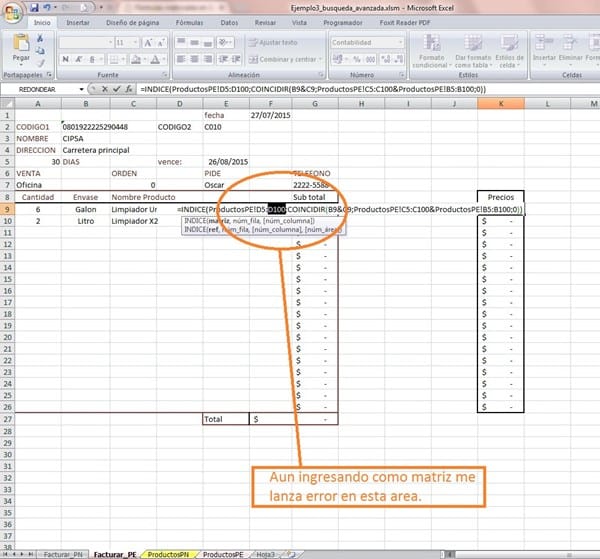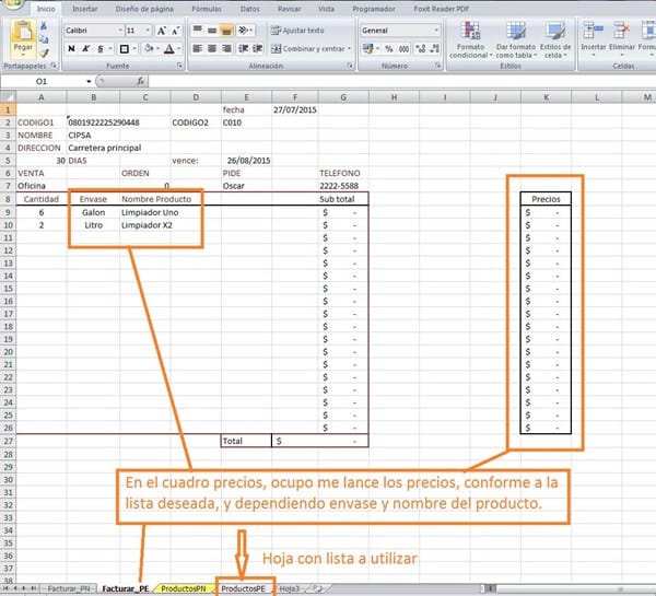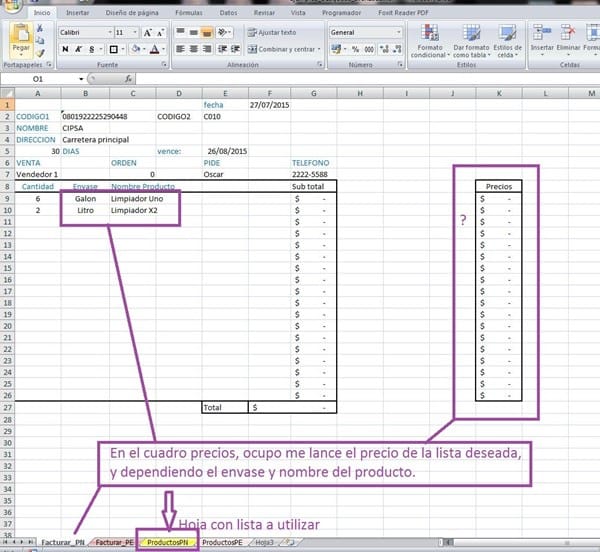 - Como hago para cada hoja de factura me lance el precio acorde a su condición (Normal, ¿o especial) y dependiendo el envase y nombre del producto?