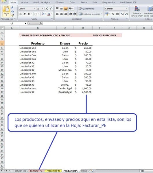 Como dato adicional en cada Hoja de que en lista los precios especiales y los normales, puede ser manipulada para agregar o quitar productos.