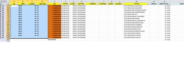 Quedando como en las fotos, llenar en ID con la letra H y en ORG canal y sector como el cuadrito de las foto llenar hacia el final del archivo sin incluir el Gran Total.
