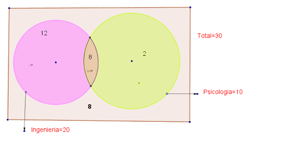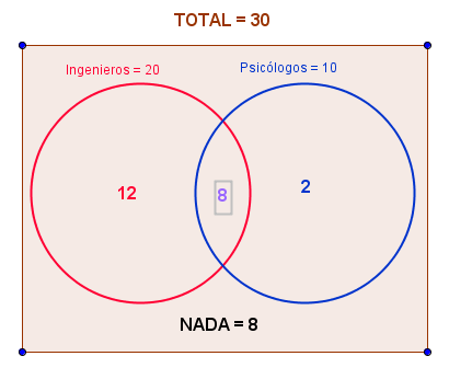 En un evento de egresados, se lograron convocar 30 personas de las diferentes escuelas, de los cuales solo asistieron 20 que eran perteneciente al programa de ingeniería de alimento y 10 de Psicología; los ingenieros de alimento estudiaron en modalidad a Distancia y los psicólogos en modalidad Virtual, 8 profesionales no dieron información. ¿Cuántas profesionales de las distintas carreras estudiaron las 2 modalidades?