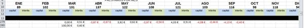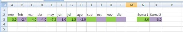 De los ocho meses quiero sumar por un lado ene, mar, may, jul y solo números positivos, y los otros cuatro meses que se sumen en otra columna, también solo números positivos.