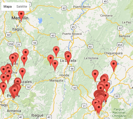 y ya sobre el mapa.