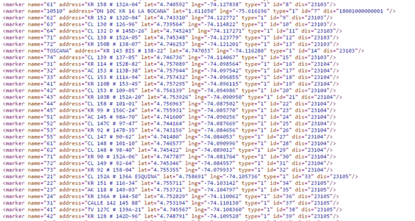 Te envio la estrucutura de un xml que utilizo para pintar unos marcadores sobre un mapa de google maps.