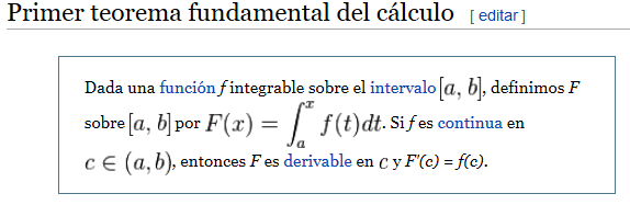 Es verdad que yo siempre había oído hablar de un teorema fuldamental del cálculo y de la regla de Barrow. Pero en otros escritos, la Wikipedia sin ir más lejos habla de dos teoremas fundamentales. Conste que para mí el que sirve es el primero, pero te pongo los dos: