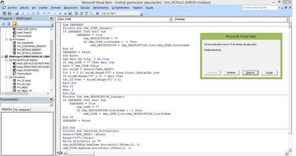 Estoy trabajando en un proyecto en Excel 2007 y al probar el código del UserForm me aparece un error de Desbordamiento en la ejecución del UserForm