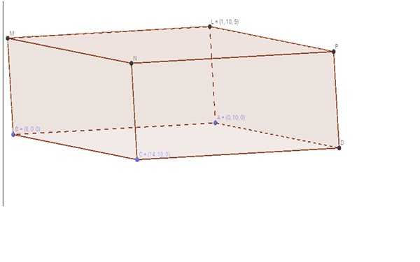 A (010,0) ; B(8,0,0) ; C(14,10,0) y L(1,10,5)