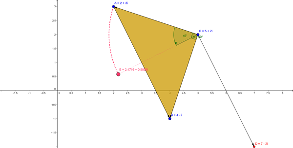4) Halla la imagen, E, del punto A por el giro de centro C y de ángulo pi/4.