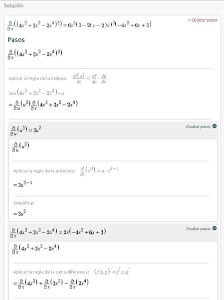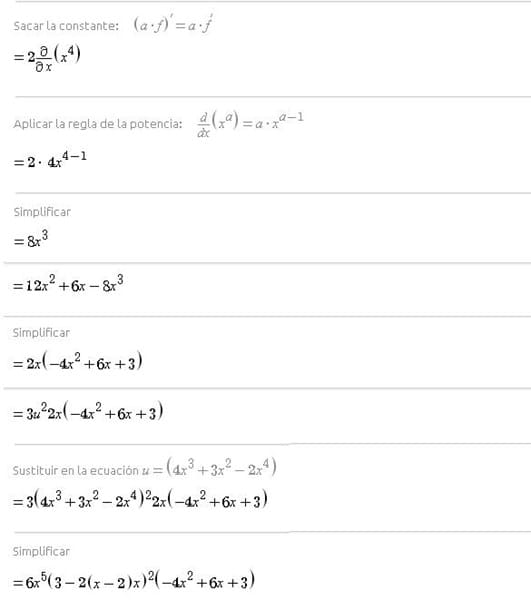 Como se desarrolla la siguiente derivada utilizando las fórmulas y reglas de derivación