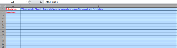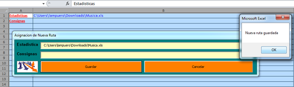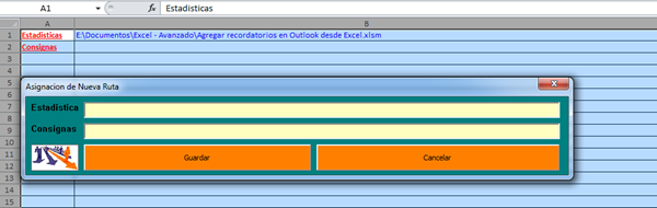 Se ha creado una hoja en el mismo libro llamada "Ruta", donde se guardaran las nuevas rutas quedando de esta manera. Donde la columna b1 será donde se guardará o reemplazará la ruta nueva.