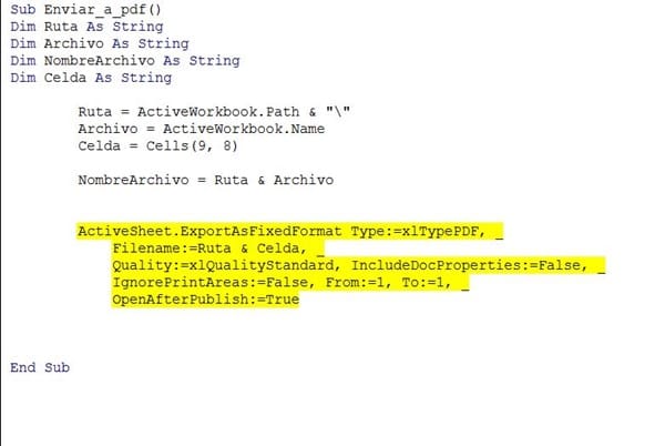 Celda = Cells(9, 8) 'Esta variable la uso para conseguir que el nombre de archivo sea el de esta celda (número de factura)