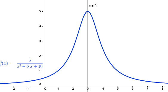Pero al ser el numerador una constante, hay una simetría respecto al eje que pasa por el vértice de la parábola del denominador, que es el punto: