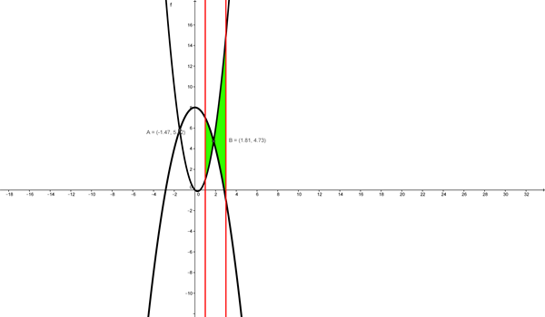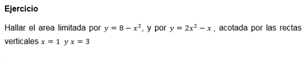 Hallar el área limitada, acotada por las rectas verticales