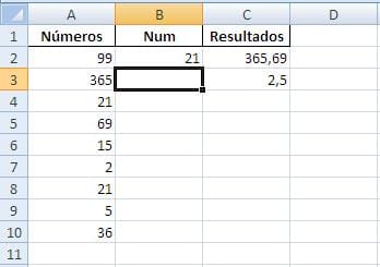 Pon los datos de la siguiente forma: los números en la columna A, el número a buscar deberás ponerlo en la celda B2. Los resultado se mostrarán en la columna C: