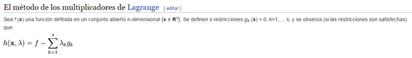 L(x;y;z;λ)= función + λ(condición 1 + condición 2)