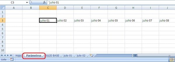 Cosa que por ejemplo cuando corra la fórmula que tomaba la celda C3 de la hoja de "Parámetros" para hacer referencia a la hoja "Julio 01" empiece a tomar las siguientes hojas a medida que la corra.