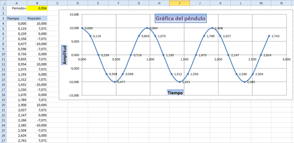 Nota: se aconseja tomar N = 10, en el entendido de que una oscilación completa dura el tiempo de ida y vuelta hasta la posición donde se tomó el origen de tiempos.
