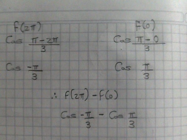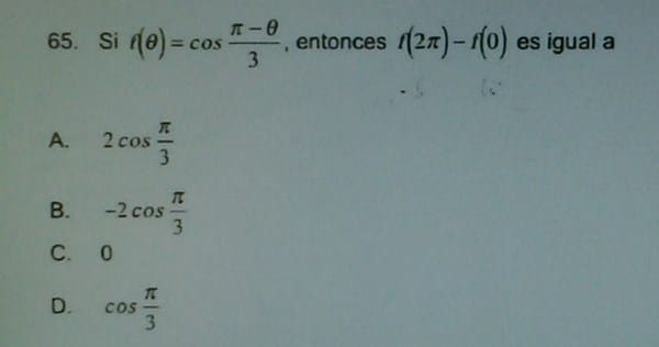 Si f( θ)= cos ((pi - θ)/3), entonces f(2pi) - f(0) es igual a: