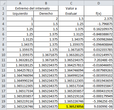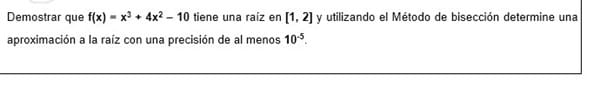 Demostrar que f(x) = x3 + 4x2 – 10 tiene una raíz en [1, 2] y utilizando el Método de bisección determine una aproximación a