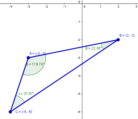 Realizar la figura y ver el triángulo formado por los vectores e indicar los ángulos, que se quieren determinar.