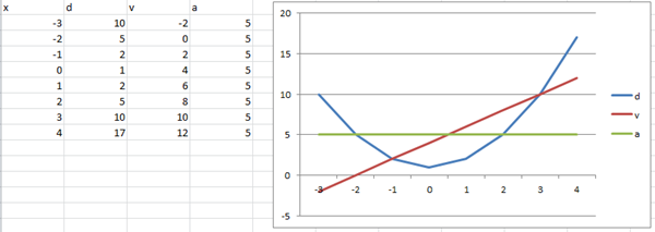 El tema es que este sector de comentarios es muy acotado para dar una respuesta (ni siquiera se permiten los puntos y aparte). Otro tema es que este profesor dio la función de distancia, velocidad y aceleración, pero son 3 funciones independientes, hubiese sido mucho mejor si ponía todos los valores relacionados, para que se vea el efecto en la misma gráfica (supongo que recuerdas que la derivada de la distancia es la velocidad y la derivada de la velocidad la aceleración). Si quieres haz otra pregunta pero aclarando un poco esto, así "inventamos" una función donde se vea el efecto que te quiero explicar. Salu2 - Anónimo