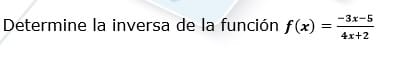 Determine la inversa de la función f(x)=(-3x-5)/(4x+2)
