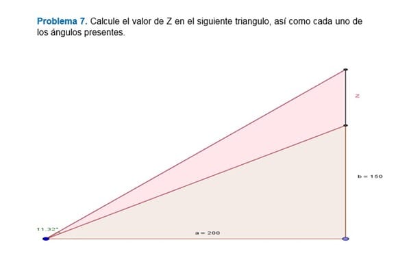 Problema 7. Calcule el valor de Z en el siguiente triangulo, así como cada uno de los ángulos presentes.