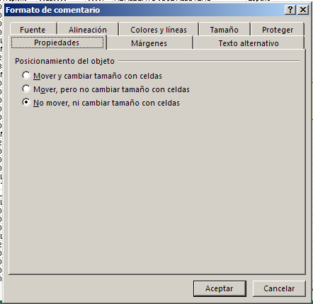 Debería estar en Mover y cambiar tamaño con las celdas para evitar aquel mensaje.