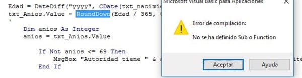 Private Sub txt_FNac_LostFocus() Dim Edad As Integer Edad = Int((Date - txt_FNac) / 365) txt_Edad.Value = Edad End Sub