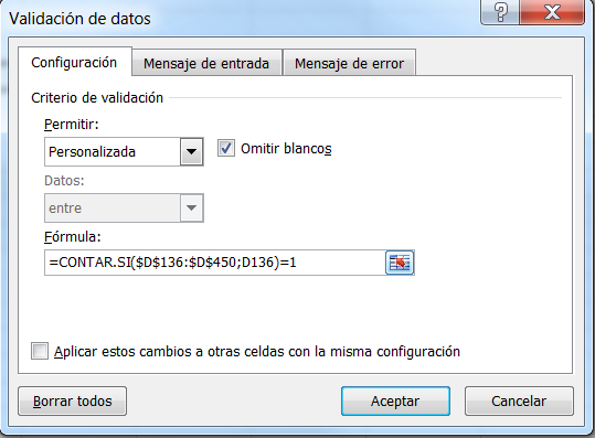 Al escribir en un rango de celdas, que me detecte si hay duplicado