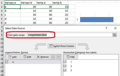 Primero debes establecer el rango asociado al gráfico ya que esa información la necesitas colocar en la macro. En mi ejemplo utilicé la Hoja5 y el rango marcado en la imagen.