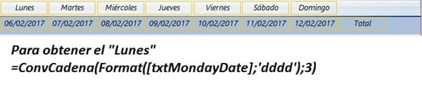 Formulario con Textbox con las fechas de los días de la semana - Access
