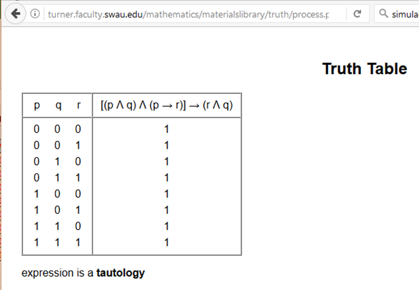 Planteamiento y resolución aplicando tablas de verdad y leyes de inferencia, simulador truth