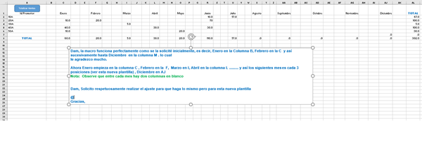 Se requiere macro que totalice las ventas por promotor de acuerdo al mes de venta