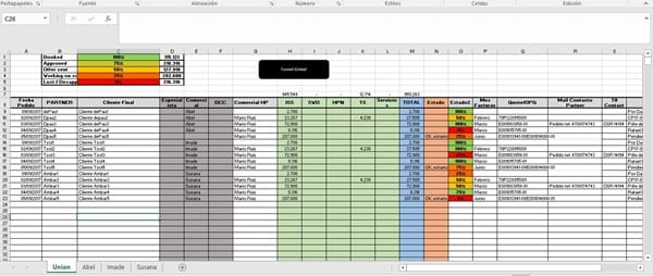 Cuando en la pestaña "Union" pulso "funel Global", me extrae los datos de las demás hojas, sin embargo, si lo vuelvo a pulsar, se vuelven a duplicar. Y justamente eso es lo que no quiero.
