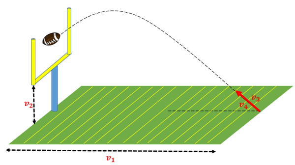 Tiro parabólico! Un jugador de fútbol americano debe hacer un gol de campo desde un punto a v_1 m de la zona de gol y la mitad