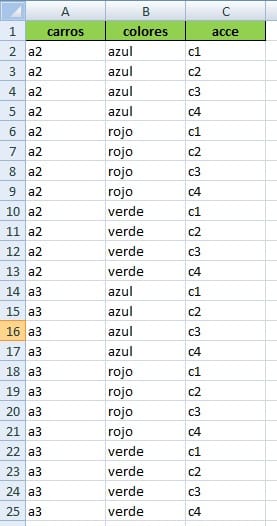 En la hoja "combinaciones" quedará el resultado así: