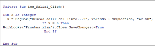 X = MsgBox("Deseas salir del libro...?", vbYesNo + vbQuestion, "AVISO")