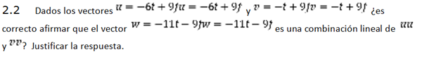 2.2 Dados los vectores y ¿Es correcto afirmar que el vector es una combinación lineal de y ? Justificar la re
