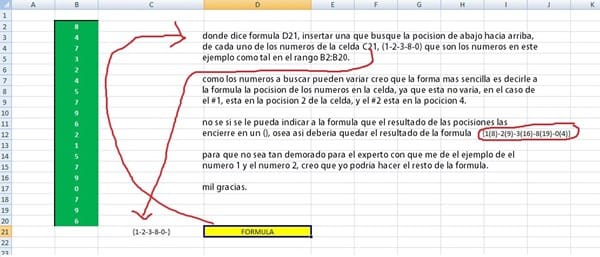 Solicito de una ayuda de un experto, ya en una anterior ocasión me facilitaron una fórmula que contaba caracteres de abajo hacia arriba pero si el numero a contar estaba en una celda en especifico, esta vez necesito mejorar la fórmula, ya que el numero que necesito contar de abajo hacia arriba en el rango, esta en una celda con varios números, pero podría indicarle a la fórmula su posición.