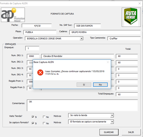 Error en captura de formulario de excel